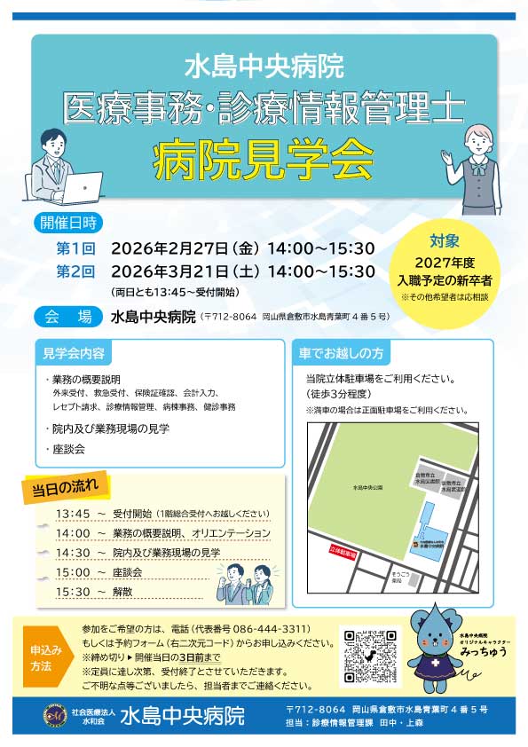 医療事務・診療情報管理士の業務内容や現場の見学ができる病院見学会を開催します!詳しい内容については画像をご覧ください☑